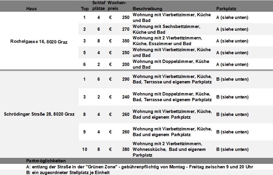Nähere Infos unter: info@monteurwohnungen-graz.at oder